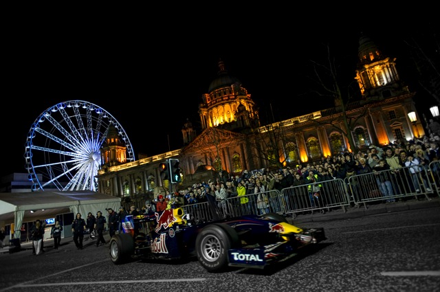 1. 佐藤琢磨がウイリアムズ・ホンダFW11で幕張メッセを全開デモラン! 快音V12ホンダミュージックも響かせる