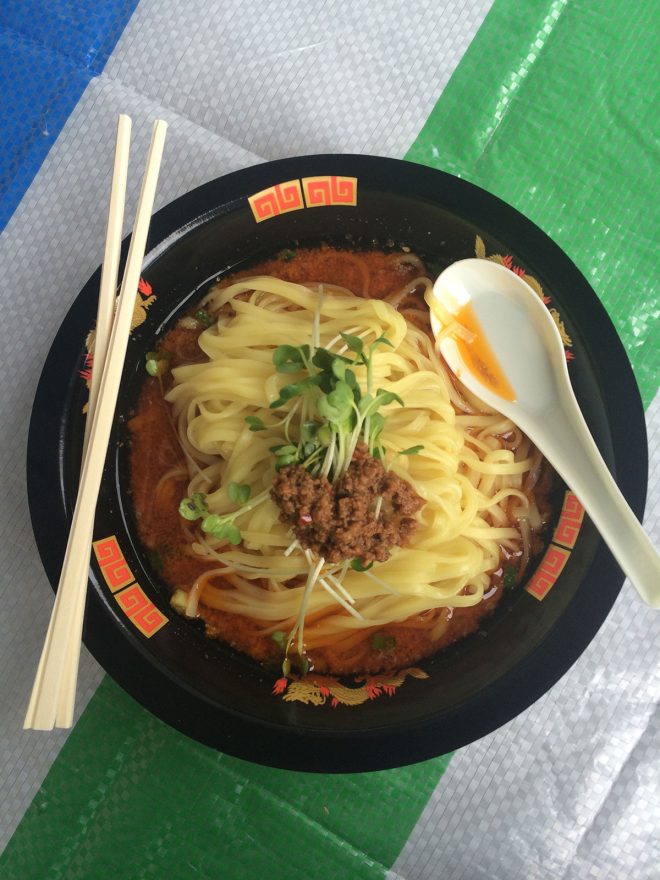 朝から担々麺。