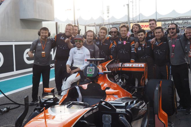 アロンソはグリッド上でも、記念撮影してました。