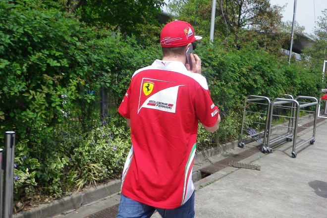 我々に気がついたライコネンさん、おもむろに携帯を取り出し「いま俺、電話中だから」アピールをしながら去っていかれました。