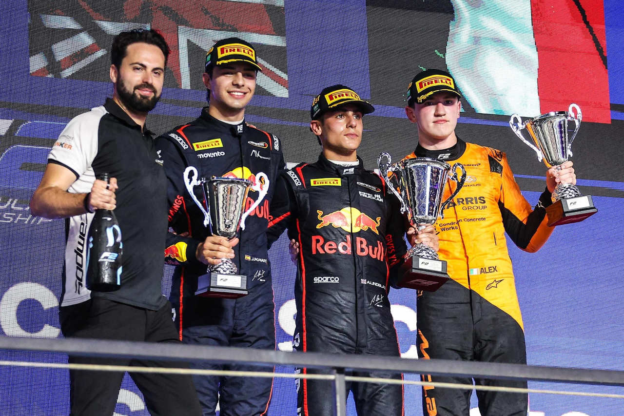 海外レース他 フォト 【写真1】2025年FIA F2第3戦ジェッダ スプリントレース暫定表彰式 投稿日: 2025.04.21 03:59 2025年FIA F2第3戦ジェッダ スプリントレース暫定表彰式 このフォトが使われている記事へ © Red Bull