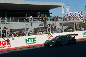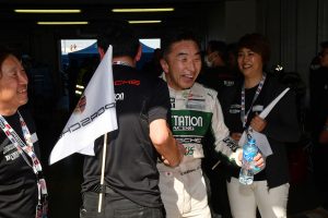 その後もD’station Porscheは、着実にラップを刻む。終盤、勝負を焦ったかA6-PROクラスの上位でもアクシデントが起き、D’station Porscheの順位はさらに上がっていった。刻一刻と近づくチェッカー。なんとそれぞれが合計8時間におよぶロングドライブを果たした近藤、そして藤井もきっちりとバトンを繋ぎ、アンカーを務める星野がピットアウトしていく。