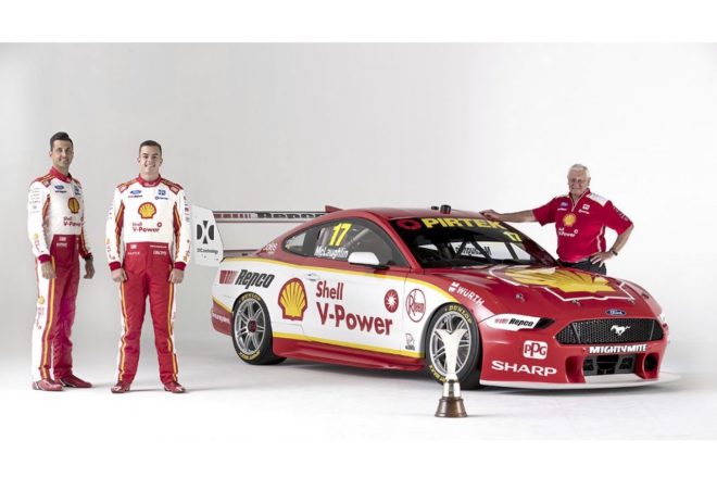 一方、2018年に念願のドライバーズチャンピオンシップ初制覇を果たしたスコット・マクローリン擁するDJRチーム・ペンスキーも、新たに”シェルVパワー・レーシング”のカラーリングをまとった『フォード・マスタング・スーパーカー』を公開。
