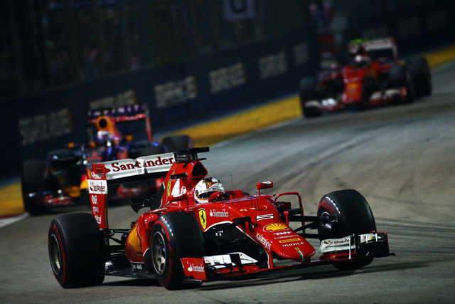フェラーリのセバスチャン・ベッテルが、自身とチームに今シーズンの3勝目をもたらしました。ベッテルは、2ストップ戦略でシンガポールのナイトレースを制し、キャリア通算42勝目を挙げました。2回のセーフティーカー導入が、戦略構築をさらに複雑にしました。残り20周時点で発生した2回目のセーフティーカー導入周回中、ドライバーたちは最終ピットストップを行い、フィニッシュまでのラストスパートで見応えある戦いを展開しました。
