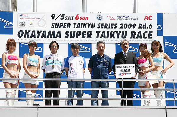 スーパー耐久シリーズに参戦するエントラントで組織するSTEL(スーパー耐久エントラントリーグ/運営委員長:花里功)は、シリーズ第6戦の舞台となる岡山国際サーキットにおいて、7月から8月にかけて自然災害に襲われて多大な被害を受けたサーキットの地元である岡山県美作市への義援金募金活動を行い、決勝レースが行なわれた6日に岡山国際サーキットを通じて美作市へと義援金を寄贈した。