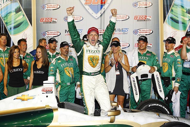 フォンタナのオートクラブ・スピードウェイでIZODインディカー・シリーズ最終戦。500マイルという長丁場のレースで佐藤琢磨(レイホール・レターマン・ラニガン)は後方からジャンプアップしトップ争いを展開するも、最終ラップでウォールにヒット。クラッシュし7位で最終戦を終えた。レースはエド・カーペンター(エド・カーペンター・レーシング)が勝利。ライアン・ハンター-レイ(アンドレッティ・オートスポーツ)が逆転で初のシリーズチャンピオンに輝いた。