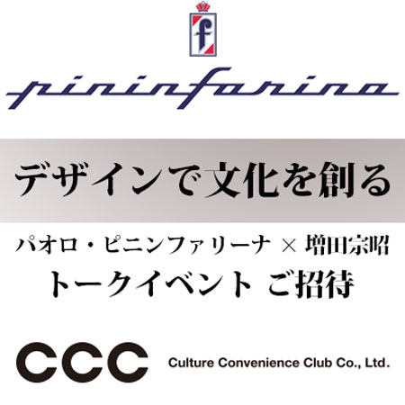 このイベントでは、イタリアの自動車メーカーを中心に様々な車両のデザインや開発に携わっているほか、工業から建築まで幅広い分野で活躍しているピニンファリーナと、TSUTAYAや蔦屋書店を通じて様々なライフスタイルを提案しているカルチュア・コンビニエンス・クラブの両代表が『"デザインで文化を創る" ~世界を変えるための新しいスタイル、建築学的方法~』というテーマで対談。語り、考える時間を参加者とともに共有するという。