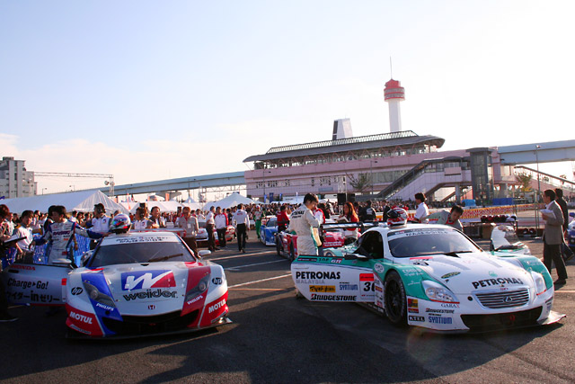 イベントは午前、午後と2回の走行が行われたが、全体的に午後に向けてテンションがアップ。コースをいっぱいに使ってスピンターンを披露したり、フォーミュラ・ニッポンやスーパーGTのR&D SPORT LEGACY B4などがピット作業やドライバー交代のデモンストレーションを行ったりと、お台場でレースの生の雰囲気を再現。大きな拍手が湧いた。