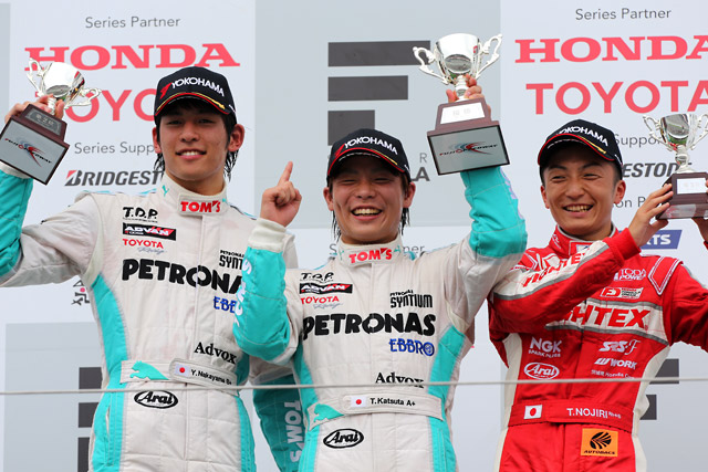 「昨日の調子を考えると、4番手スタートというのはちょっと不満というか、もう少し何とかできた部分はあったかなという予選でしたが、レースには気持ちを切り替えて臨むことができました。千代選手が1周目からタイヤをロックさせたりしているように見えたので、抜くチャンスはあるなと思っていて、危ない場面もありましたがしっかりとオーバーテイクできたと思います。1コーナーでの駆け引きも結果的にうまく誘い込めましたね。そのあとはトップ2台にくっついていきたかったのですが、タイヤが新品の時にはグリップでごまかしの効く部分があったものの、グリップがなくなった時にはやはり(トムス2台とは)まだ差があるように感じました。明日はもう少し気温と路面温度が上がってくれたらなと思いますが、こればっかりは自分で何とかできるものではないので、チームと一緒にベストを尽くすだけですね。表彰台に上がって、いい流れを茂木に持って行けるレースにしたいです」