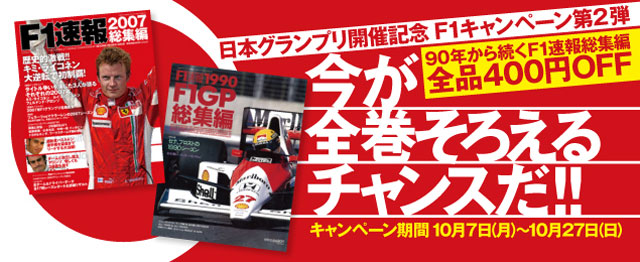 F1日本グランプリの開催を記念して、F1速報総集編の全バックナンバーの電子版を一律500円で販売するこのキャンペーン。当初27日(日)までの予定となっていたが、好評につき期間を1週間延長し、11月4日(月)まで実施されることとなった。