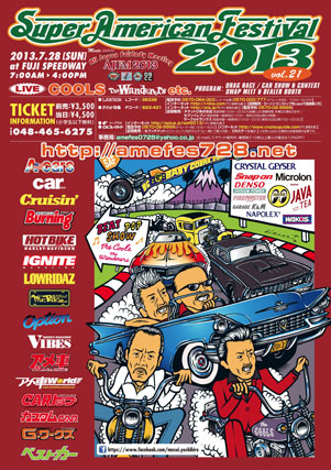 富士スピードウェイで7月28日(日)に、今年で21回目を迎えるアメ車の祭典“Super American Festival 2013 Vol.21”が開催されます。