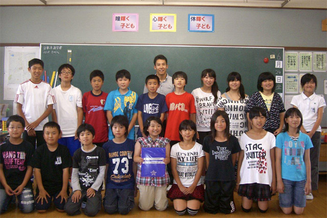 「実際に被災地を訪れ、被害状況を目の当たりにし今回の震災の甚大さをあらためて痛感しました。子どもたちにどういう言葉をかけていいものかと緊張してうまくお話しすることができなかったかもしれませんが、こどもたちはリラックスした様子で真剣に僕の話を聞いてくれました」と訪問した感想を語る小暮。