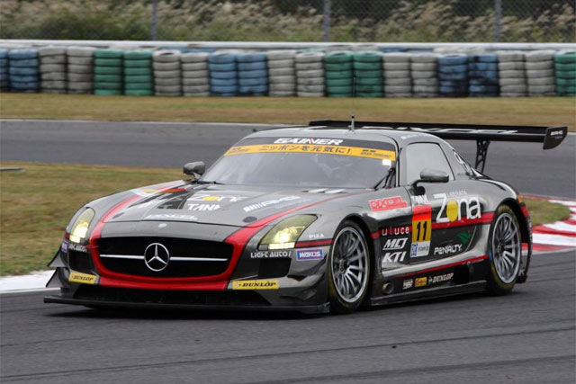 オンタイムで練習走行は開始されたが、開始10分で赤旗中断。再開はされたが、雨、霧共に酷くなりほとんどの車がピットで待機。結局9時50分頃練習走行が出来る状況ではなく走行は終了。しかし、GAINERの2台は、走り出しから調子は悪くなく、10号車田中哲也が1分58秒162でトップタイム。11号車は1分58秒640で2番手のタイムで走行を開始していた。