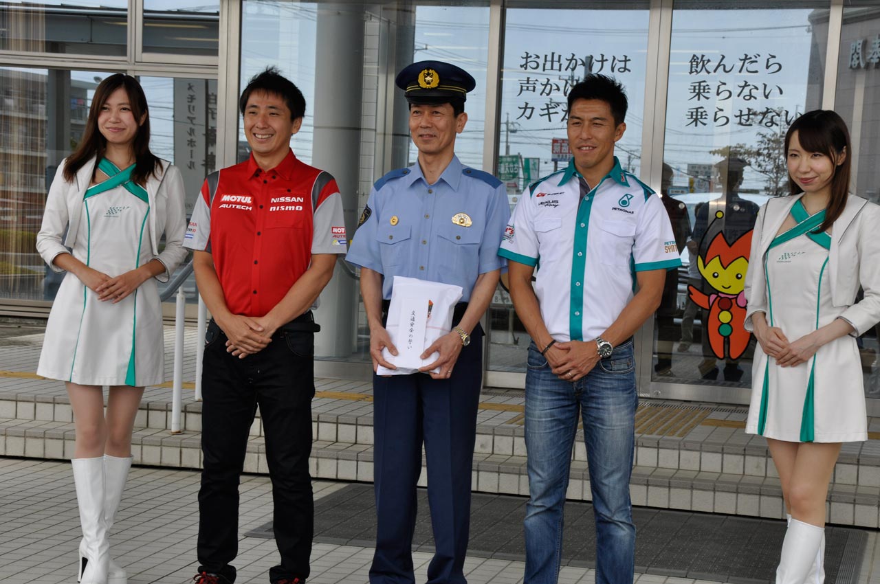 鈴鹿警察署を表敬訪問した松田次生選手、伊藤大輔選手、そして髙嶌秀紀鈴鹿警察署長
