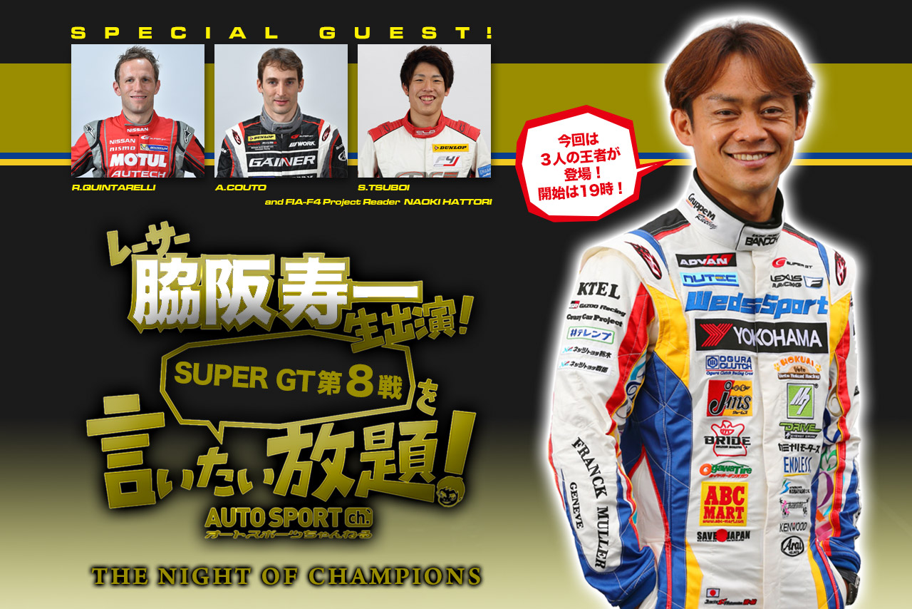 スーパーGT フォト 【写真1】王者出演。『寿一の言いたい放題!』は11/26放送!(1) 投稿日: 2015.11.19 00:00 『脇阪寿一のSUPER GT第8戦を言いたい放題!』は11月26日19時オンエア! お見逃しなく! このフォトが使われている記事へ © GTA / JS-Style / AUTOSPORTweb