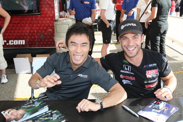 今週末のインディジャパンに出場するE.J.ビソがレースを前に来日し、プロ野球東京読売巨人軍のアレックス・ラミレスと時間を共にした。