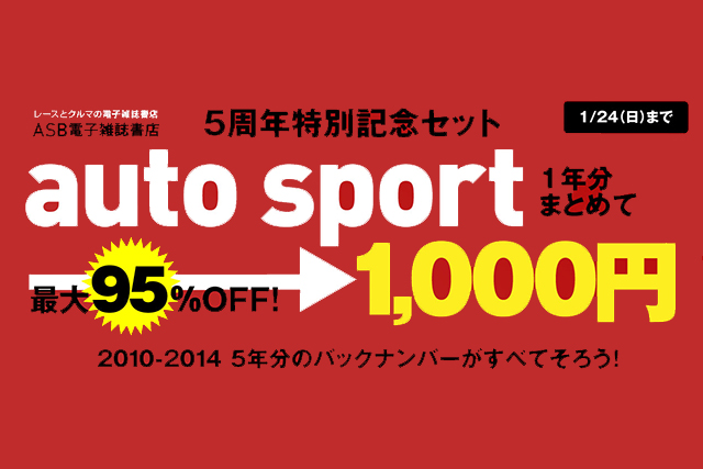 オートスポーツwebの姉妹サイト『オートスポーツブックス(ASB電子雑誌書店)』はオープンして今月で丸5年。現在、これを記念した超目玉セールおよび豪華プレゼント企画を実施している。