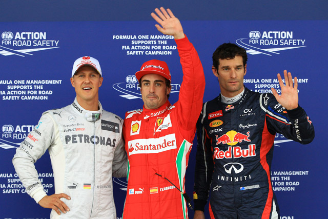 まず初めに、このポールをマリア・デ・ビロタに捧げたいと思う。彼女は今とても苦しい時期にいる。この数日僕らは皆とても悲しみ、彼女と彼女の家族のことを思っている。ポールを獲れたのは驚きだった。こういうコンディションの中では、何が起こるか予想できないからね。今朝ドライコンディションではマシンはとても好調だったけれど、ウエットでは全く違う状況になりえたんだ。マレーシアとムジェロテストを考えれば、F2012が雨の中でも悪くないことは証明されていたとしてもね。今日の午後は、成功を収めるには、正しいタイヤで正しいタイミングで正しい場所にいる必要があった。それから少しの運も必要だったね。今回は僕らに流れが向いていた。Q2初めにスピンし、赤旗中断の後、危ういところでQ2落ちを免れた。終盤、前にマシンがいて視界がとても悪かったし、最終コーナーでイエロールフラッグが出ていた。でもなんとか次のステージに進めたんだ。今日のポールは特殊なコンディションでつかめたものだと分かってはいるが、それでも重要だ。トップとの差を縮めたと言うには、ドライコンディションでポールを獲る必要があるけどね。今回は先頭からスタートするから、明日のレースは退屈な展開になってほしいな。
