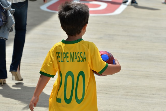 2009年のハンガリーGPの予選で頭部に重傷を負い、終盤7戦を欠場したマッサ。その欠場中に誕生したのが、長男のフェリペ・ジュニア(フェリペーノ)だ。父親のマッサが挑む200戦目のイギリスGP初日、母親とともに応援に駆けつけたフェリペ・ジュニアは、サッカーのブラジル代表のユニホームを着ていた。ヨーロッパ時間で金曜日の夜に、ワールドカップのブラジル対コロンビアの準々決勝が行われるからである(結果はブラジルの勝利)。