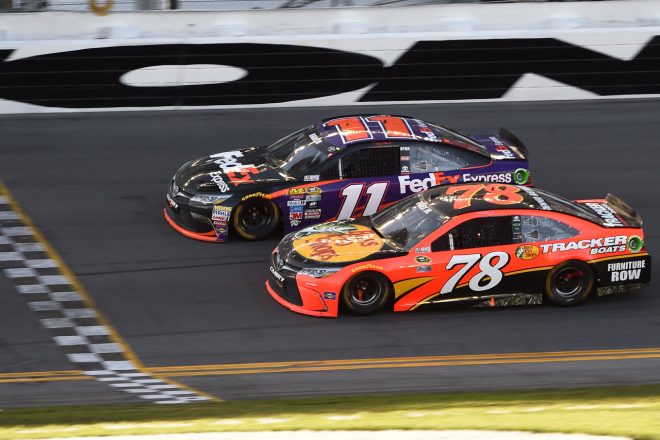 NASCARスプリントカップ・シリーズは21日、デイトナ・インターナショナル・スピードウェイで開幕戦デイトナ500の決勝レースが行われ、チャッカー間際の劇的なバトルを制したデニー・ハムリン(トヨタ・カムリ)が優勝を果たした。