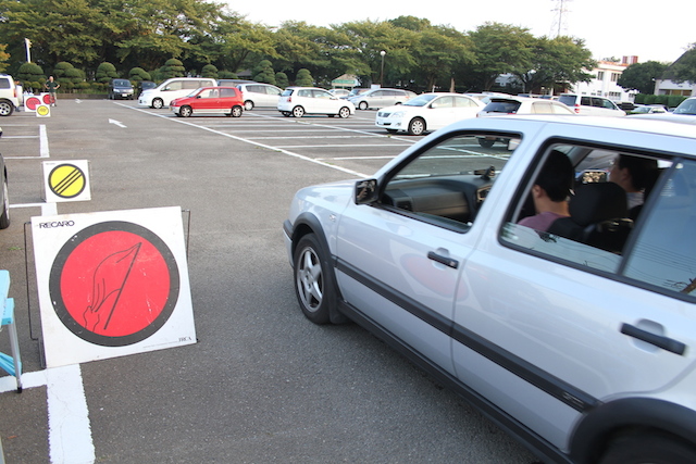 模擬ラリーでは、駐車場内に短い距離のSSを設定し、TCカードの使い方やTC通過のタイミングなどを実際にクルマに乗りながら体験できる。