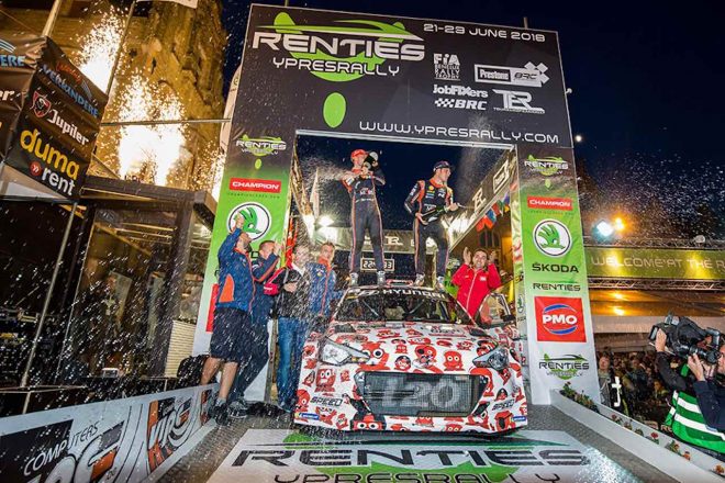 • WRC第8戦終了時点でランキング首位につけるティエリー・ヌービル(ヒュンダイi20クーペWRC)