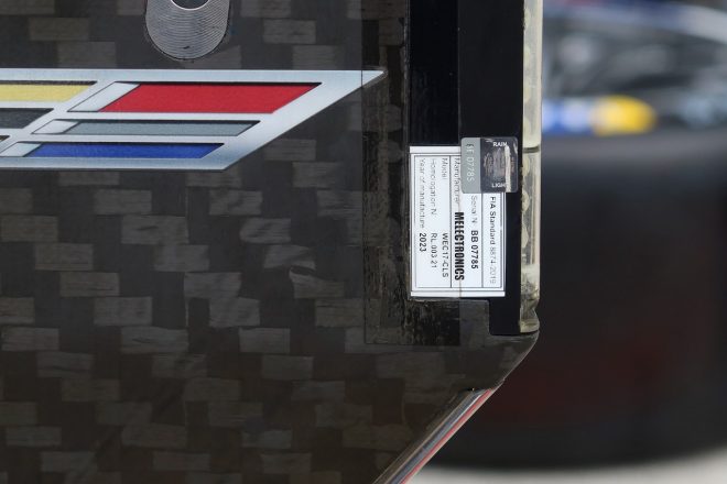 • 左フロントタイヤが脱落するアクシデントに見舞われた2号車キャデラックVシリーズ.R