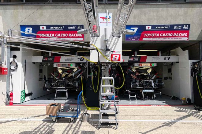 • ル・マン24時間が開催されるサルト・サーキットに佇む2台のトヨタGR010ハイブリッド