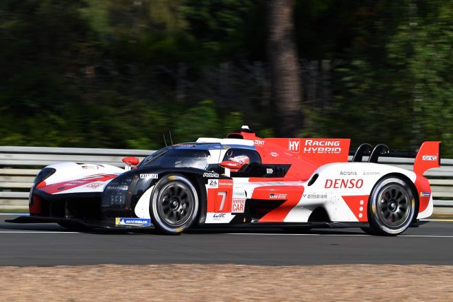 • 6月15日、決勝1週間前のテストデーのセッションでサルト・サーキットを走行する7号車GR010ハイブリッド