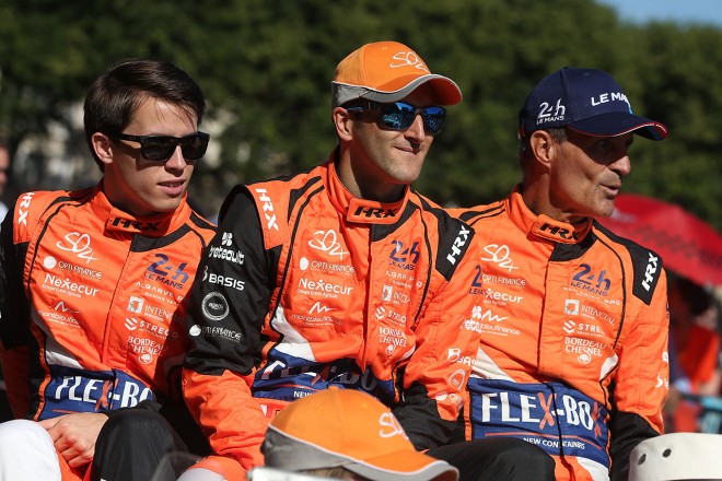 • ル・マンでグランドマーシャルを務めたマーク・ウエーバー、スターターとなったF1会長のチェイス・キャリーと並んでセレモニーに出席したジャン・トッドFIA会長