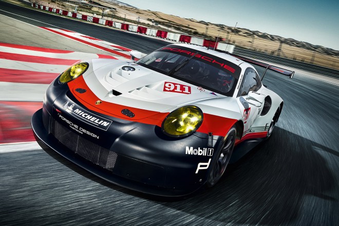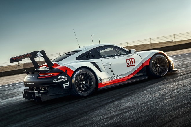 • WEC/IMSA向けに投入される新ポルシェ911 RSR。17年規定に準拠し、大型のディフューザーを備える。
