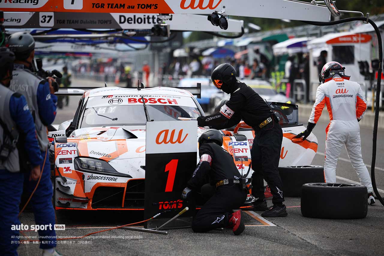 スーパーGT フォト 【写真2】スーパーGT第6戦SUGO決勝 投稿日: 2025.09.21 21:06 今回のau TOM’S GR Supraはスタートを山下健太が担当。後半スティントを坪井翔が担った。 このフォトが使われている記事へ © Shigenobu Yoshida このフォトが使われている記事へ © Shigenobu Yoshida