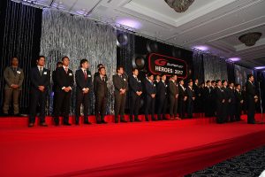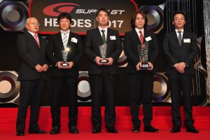 また、スーパーGTのGT500、GT300の各チームチャンピオン授与式に続いては、全エントラントを代表してaprの金曽裕人代表があいさつ。「2018年はファンが驚くようなドライバーが参戦すると聞いておりますし、GT300にはまた新たな車種が登場すると聞いています」と来季より一層、エントラントたちによってスーパーGTを盛り上げていくと語っている。