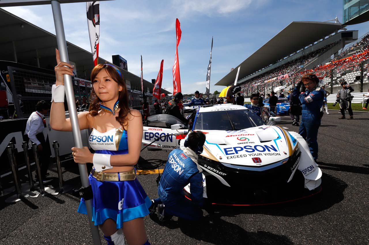 スーパーGT フォト 【写真1】Epson Nakajima Racing スーパーGT第3戦鈴鹿 決勝レポート 投稿日: 2018.05.21 10:41 Epson Modulo NSX-GT このフォトが使われている記事へ © Honda