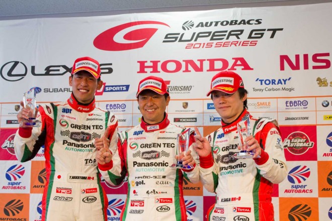 2015年スーパーGT第2戦富士の予選で、GT300クラスのポールポジションを獲得した、TOYOTA PRIUS apr GTの佐々木孝太と中山雄一、嵯峨宏紀が、今回の予選を振り返った。