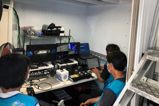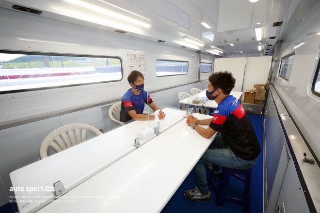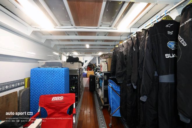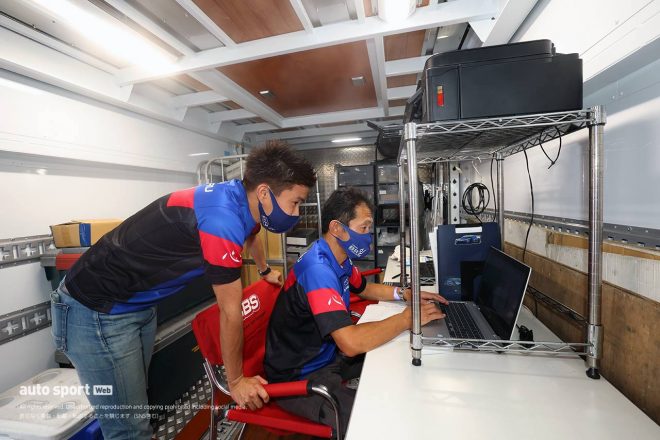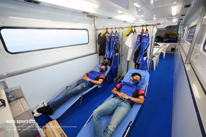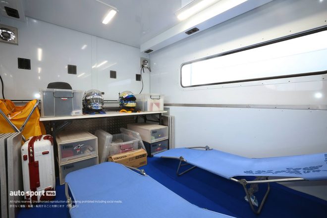 こんな感じで、エンジニアさん、中継スタッフさん、そしてドライバーと、みんなが一丸となって働くために欠かさせない機能が集約されているのが、僕らのトランポなんです。次のレースでも、このトランポから頑張ります!