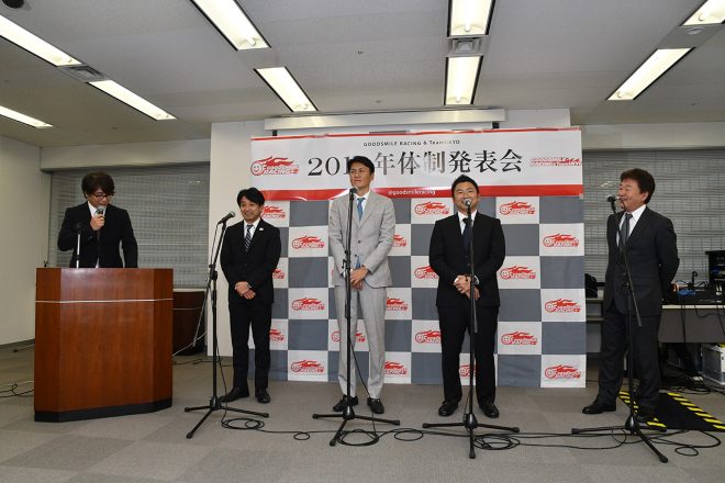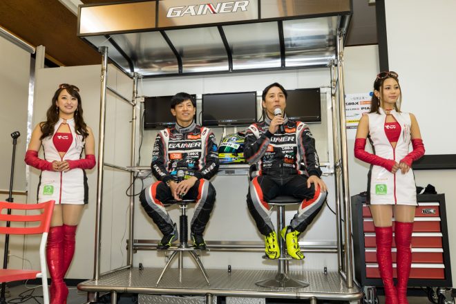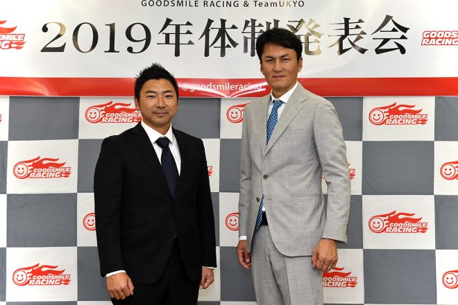 • TEAM KUNIMITSUのファンミーティングに登場した山本尚貴とジェンソン・バトン、高橋国光総監督
