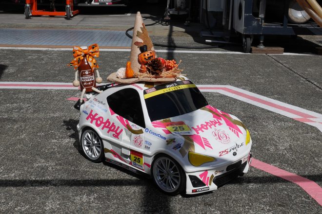 • GT300クラスのポールポジションを獲得した坪井翔と松井孝允(HOPPY 86 MC)