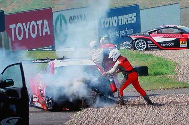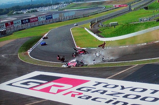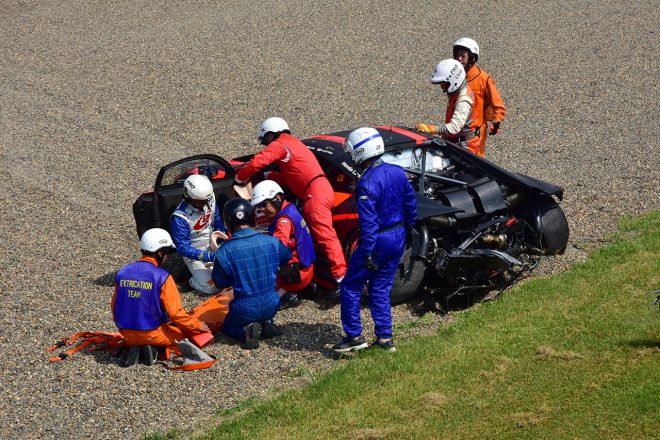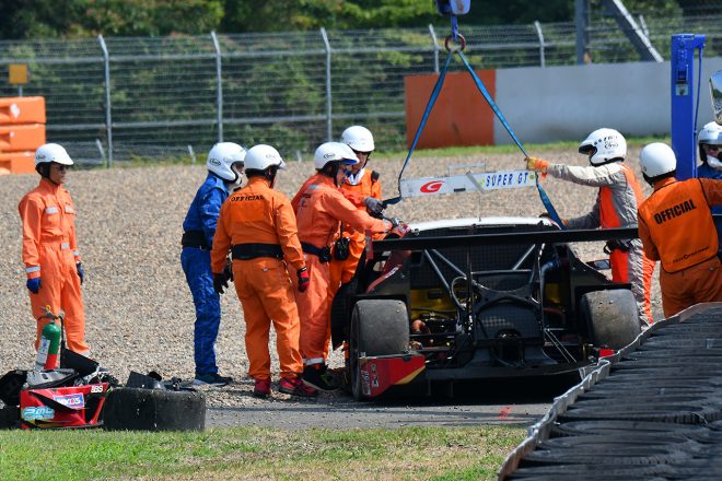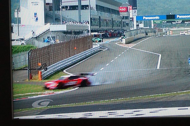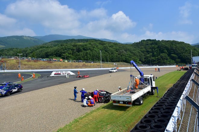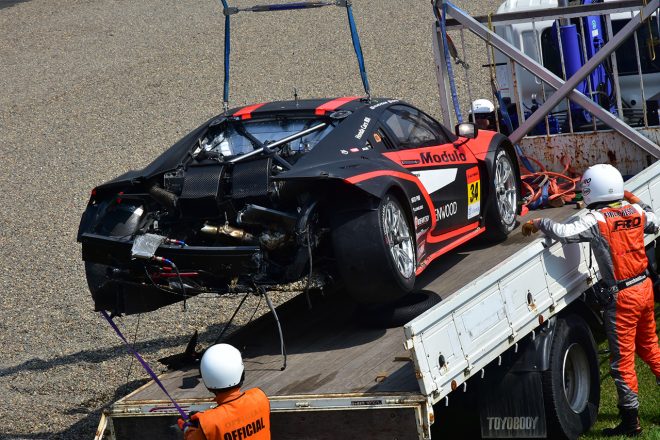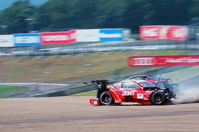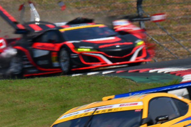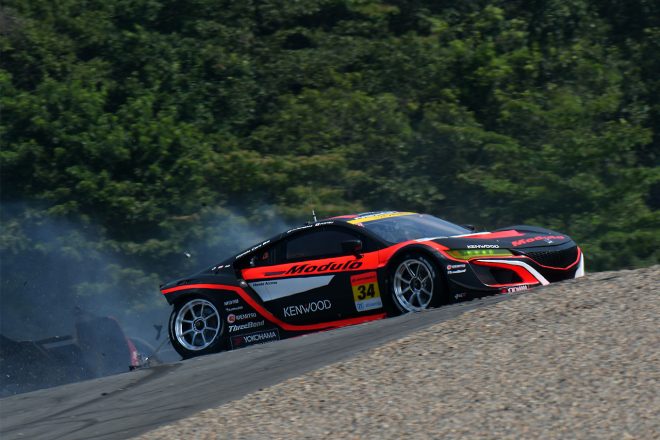 • ZENT CERUMO LC500とModulo KENWOOD NSX GT3のクラッシュでコース上にはパーツが散乱した