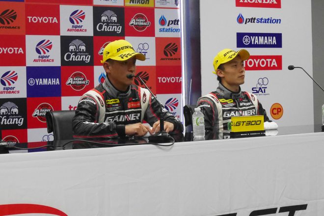 • 第4戦タイのスーパーGT300クラスを制した平中克幸と安田裕信(GAINER TANAX GT-R)