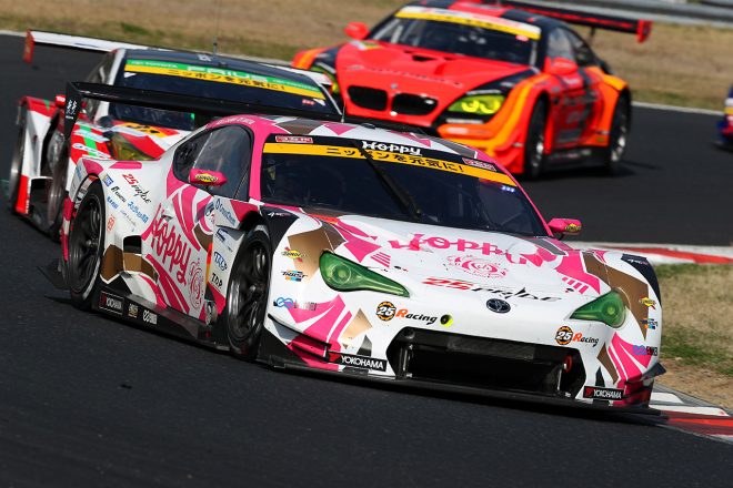 • レース中盤、小林崇志(UPGARAGE 86 MC)は松井孝允(HOPPY 86 MC)とバトルを展開
