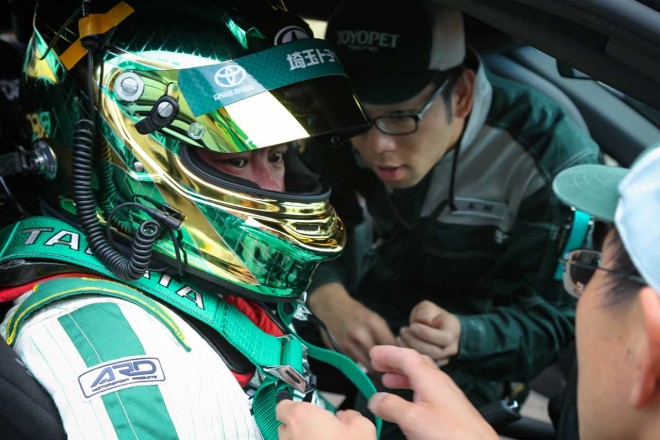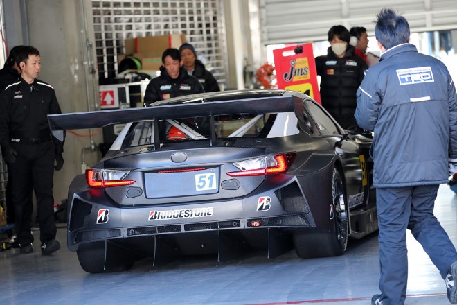 • 富士スピードウェイでシェイクダウンされた51号車レクサスRC F GT3を見守る坪井翔