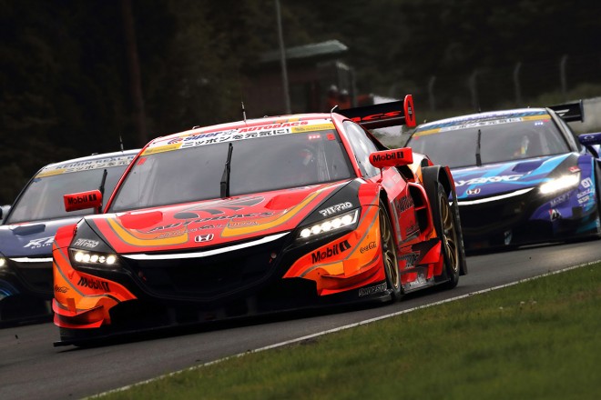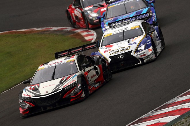 • 2016スーパーGT第4戦SUGO トップ争いを繰り広げるKEIHIN NSX CONCEPT-GTとZENT CERUMO RC F